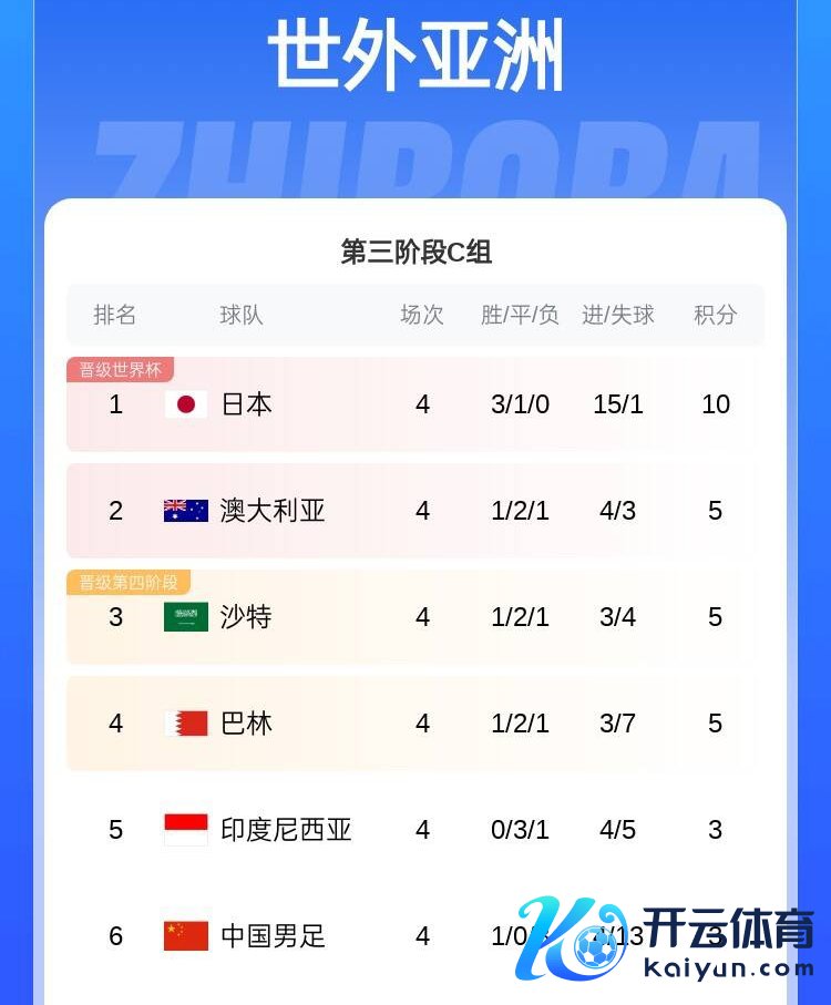 当今在18强赛C组积分榜,巴林1胜2平1负积5分暂列第4位,不外他们与身前的澳大利亚、沙特同分,而中国队3分位列第6位,与身前的印尼一样同分。