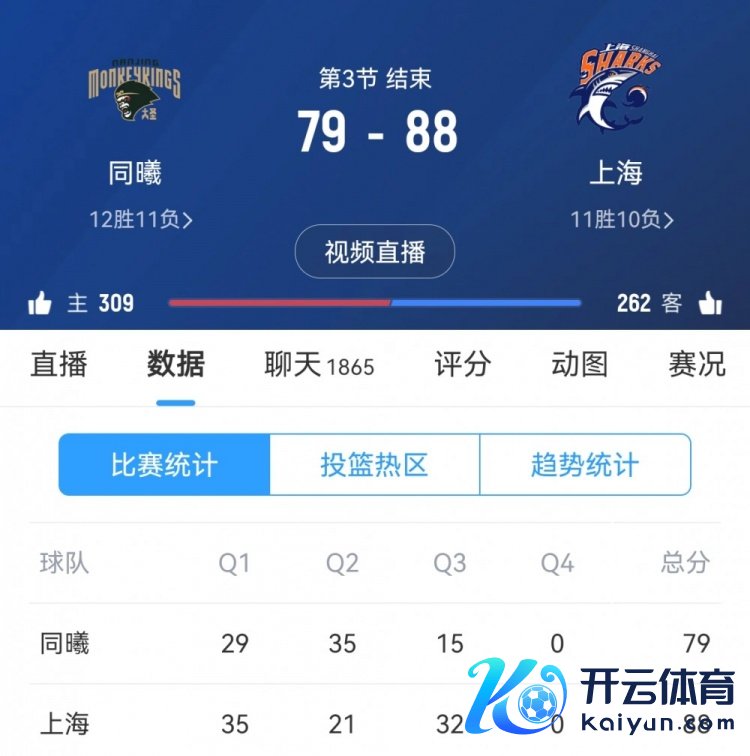 第三节,上海攻防两头压制敌手,单节以32-15净胜敌手17分,三节打完上海88-79卓著同曦。