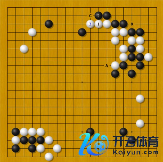 同期以后角里是到B位去搞两手劫,一经在C位走个先手就算完事了,关于白棋来说相似也很纠结。