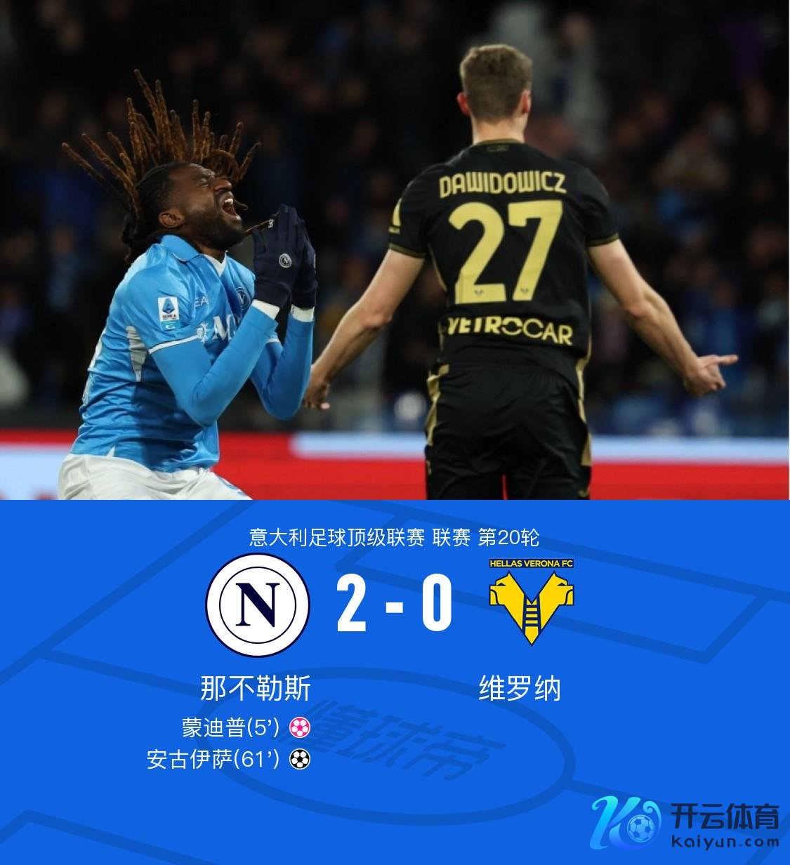 介怀大利足球顶级联赛第20轮的较量中,那不勒斯镇守主场迎战。比赛中,维罗纳的蒙迪普失慎将球送入自家球门为那不勒斯得到最初。随后,那不勒斯的送出精妙助攻,安古伊萨兜射得胜破门再下一城。最终,那不勒斯以2-0治服维罗纳,得到告成。