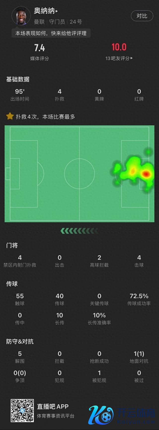 直播吧12月5日讯 在刚刚死心的英超焦点战中,曼联0-2不敌阿森纳。本场比赛,奥纳纳发达骁勇,靠近阿森纳全场14脚射门,他作念出4次扑救体育赛事直播,丢掉2球,评分7.4队内最高。